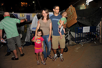 מתחברים למחאה בנושא החינוך. משפחת שניידר (צילום: בן קלמר)