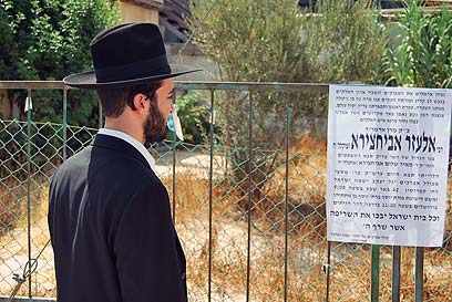 מודעת אבל ליד בית הרב (צילום: זאב טרכטמן)
