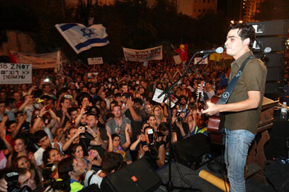 אביב גפן עם המפגינים בירושלים (צילום: גיל יוחנן)