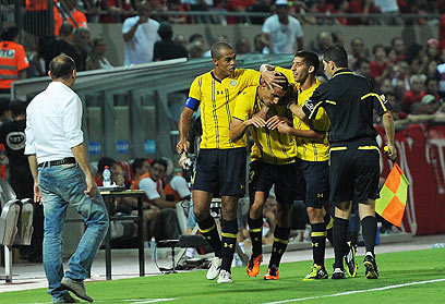 קולאוטי וישראלביץ' בטירוף לאחר השער השני (עוז מועלם)