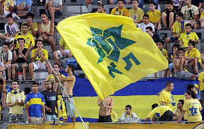 אוהדי מכבי ת"א באצטדיון היפואי. היו להם סיבות לשמוח (ראובן שוורץ)