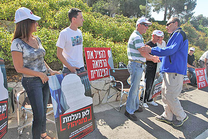 אידלמן עם מפגינים, היום במאהל בירושלים (צילום: גיל יוחנן)