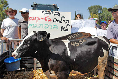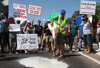 רפתנים בצומת יד מרדכי. "הפגיעה לא תועיל לצרכן" (צילום: צפריר אביוב)