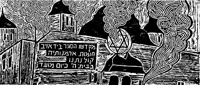 במגילת החורבן של מסר יש צלב קרס, נער יהודי שמרים ידיים בהכנעה, עיר יהודית נשרפת וגדרות תיל. התחושה האיומה של הטקסט עוברת.