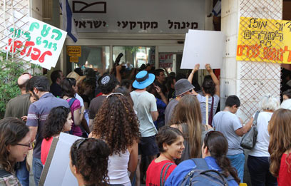 מפגינים מחוץ למשרדי המינהל (צלום: גיל יוחנן)