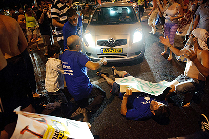 חוסמים את הכביש בצומת סביון (צילום: בן קלמר)