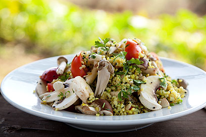 סלט בורגול, פטריות ועלים (צילום: דניאל לילה)