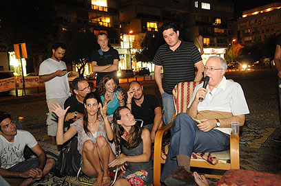ראש צוות רוטשילד במאהל בכיכר המדינה (צילום: ירון ברנר)