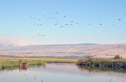 להקות עצומות של בעלי כנף עוברות בעונה זו בצפון. עגורים באגמון
