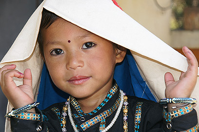 ילדה משבט הראנג בכיסוי ראש מסורתי