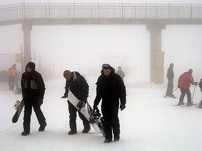 כמו בתוך ענן. הכניסה לאתר החרמון, אתמול (צילומים: דניאל ברמן)