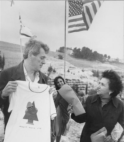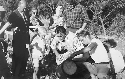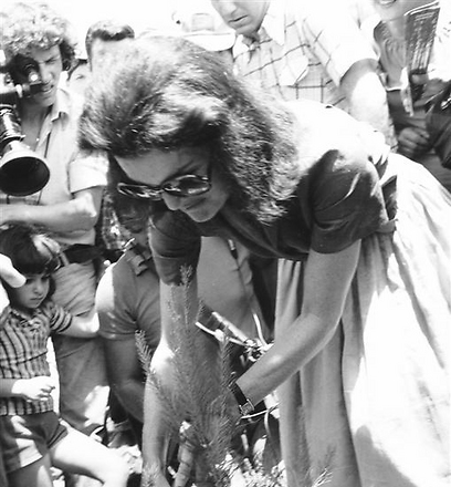 ג'קי קנדי נוטעת עץ באנדרטה לזכר בעלה, 1978 (צילום: דן שפנר)