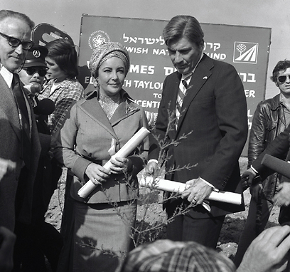 אליזבט טיילור נוטעת עץ בנס הרים, 1971 (צילום: ארכיון קק"ל)