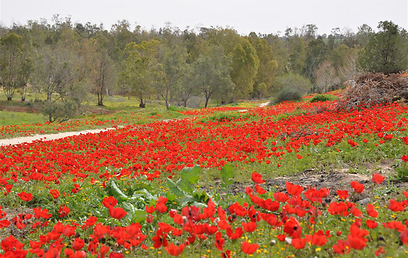 חורשת איקליפטוסים בין אלפי הכלניות ברוחמה