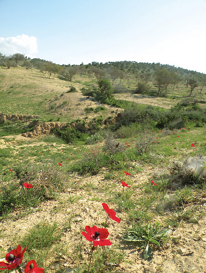 מומלץ לטייל לאורך השביל בחורף. כלניות בסובב ב"ש