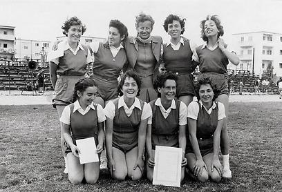 16. מפעל מרט, 1955 (מרט היה מראשוני מורי הספורט של הריאלי, על שמו מפעל מרט -תחרויות ספורט של בית הספר). בתצלום: נבחרת הבנות של בית הספר. שורה עליונה משמאל: זיוה רוזנבלום, דליה שנורמן, אמירה - המורה, מנוחה טוקר. שורה תחתונה: יהודית כץ, נעמי מירסקי, איה קורץ, יהודית בלושטיין