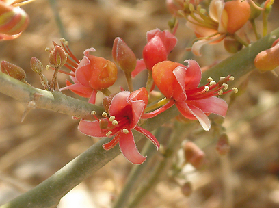 מסדר זיהוי: שיח קוצני ממוצא סודני שגובהו 4-2 מטר. ענפיו מסועפים וצבעם ירוק בהיר, לרוב הם חסרי עלים. בראש הצמח מופיעים המוני פרחים אדומים.