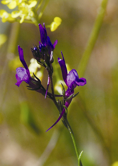 על הגבעול פרחים באדום-סגול. פשתנית ריסנית (צילום: אישי טלמון)