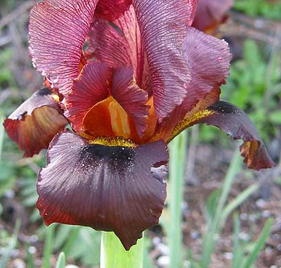 מסדר זיהוי: צמח רב-שנתי בגובה 50-30 ס"מ. העלים שלו מזכירים בצורתם מעין חרב. קוטר הפרח 11-8 ס"מ וצבעו סגול עד ארגמן כהה.