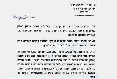 בפסק דין הבוררות שפירסם הרב שבח צבי רונזבלט מבני ברק נכתב: "מכיוון ששני הרבנים החשובים טורחים רבות להרבות כבוד שמים בעולם, לכן מכוח התורה הקדושה חייבים הרב אמנון יצחק שליט"א והרב יצחק פנגר שליט"א להפסיק – וכן להורות לכל תלמידיהם וידידיהם להפסיק – מיד כל התנצחות בסתר ובגלוי".