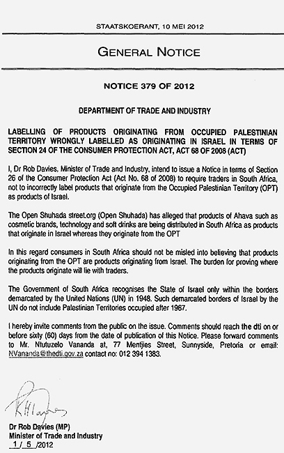 ברגותי ובכירים פלסטינים נוספים בירכו השבוע את ההחלטה של ממשלת דרום אפריקה. אך טבעי הוא שכאשר הפלסטינים מקבלים רוח גבית בינלאומית בקמפיין להחרמת מוצרים, הקמפיין המורחב שלהם להחרמת כל המוצרים מישראל, יתפוס תאוצה. אך בפועל זה לא כך.