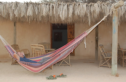 המדבר בתקופה הזו של השנה, הווה אומר יולי ועד לניצני אוגוסט, מאפשר לישון כמו שצריך. גם אם האוויר "עומד" הוא לא לוהט ומאפשר שינה איכותית. בחאן שהיינו בו אנשים נרדמו על מחצלות או ערסלים, כי מי בכלל רוצה לישון בחדר סגור עם גג מעל הראש והרי את זה יש לנו בכל מקום.