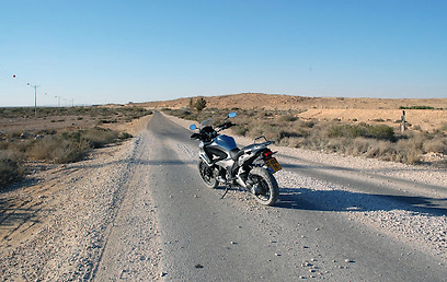 לעשות פרסה חזרה? ממש לא. האופנוע במדבר (צילומים: מישל דור)