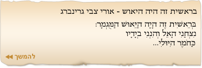 לתפילות יום הכיפורים שיאים רבים. הפיוט "כי הנה כחומר ביד היוצר", הנאמר בקהילות אשכנז במטרה להדגיש את אפסותו של האדם - הוא, ללא ספק, אחד הבולטים שבהם. הנה הביצוע של אודליה ברלין, ולאחריו הרצון של אורי צבי גרינברג להתמסר ליד היוצר.