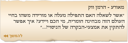 "לאדם מערכי לב, ומהשם מענה לשון. השם שפתיי תפתח, ופי יגיד תהילתך". יחיאל נהרי פתח שפתיו בסלסול, גם ורדה ואודי שפילמן הלחינו מחדש אבל הביצוע של הרב הלל פלאי בעמותת "זיכרון מנחם" (לתמיכה בילדים חולי סרטן ובני משפחותיהם), פשוט ומצמרר. להרמן ווק, בטקסט הגותי, יש מחשבות על מהי תפילה.