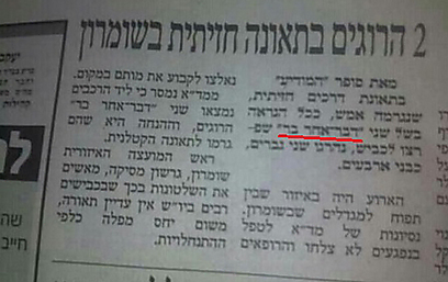 דיווח בעיתון חרדי: תאונה עם "דבר אחר בר"