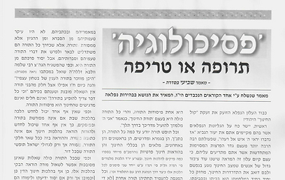 חוברת המופצת באלפי עותקים בחברה החרדית, מגלה את היחס המנוכר של המגזר לטיפול פסיכולוגי. כשגדולי הדור כותבים על הפסיכולוגיה שהיא "כפירה בה", מי יטפל בצעירה שחוששת לדבר בלי התרת נדרים, או בחרדי שנוטל ידיים שוב ושוב?