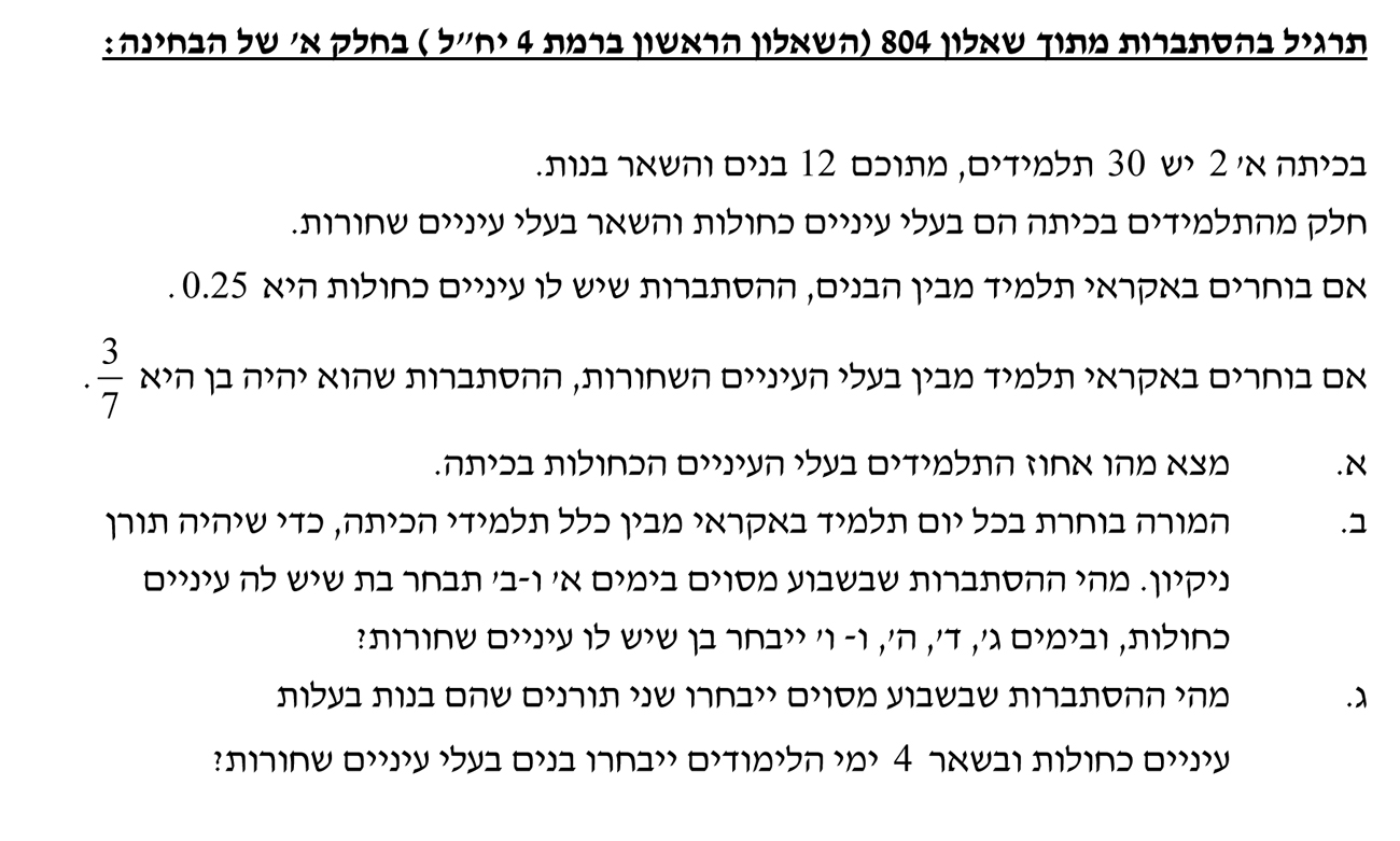 הלחץ, הפחד מהבלק אאוט, הניסיונות להירגע. 200 אלף תלמידים נכנסים לימים האחרונים לפני הבחינה הגדולה - וגם אתם יכולים לבדוק אם הייתם מצליחים לפתור, ב-3, 4 או 5 יחידות. למשל את השאלה על רוכב הקורקינט שיצא מנתניה לת"א