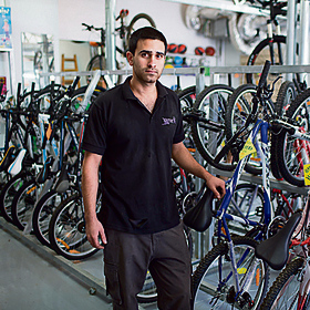 בן 24, נשוי טרי, פתח את החנות לפני שלוש שבועות בלבד. "השקעתי פה עשרות אלפי שקלים", הוא אומר. "ש הרבה רוכבי אופניים בגוש, והייתי בטוח שאיך שאני אפתח, העסק ירוץ וישגשג. הדבר היחידי שלקחתי בחשבון הוא החורף, שהחורף זו עונה פחות טובה בעסק הזה. אבל את מצב הביטחוני ממש לא. בפועל, יום לפני הפתיחה אירע פיגוע דריסה פה ממול, ומאז המצב רק הלך והחמיר. יש ימים שאני יושב כאן ומנסה לשכנע את עצמי שלא עשיתי טעות שפתחתי, ימים שאני סוגר קופה על אפס".