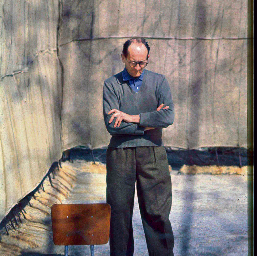 הפושע הנאצי אדולף אייכמן מטייל בחצר בית הכלא ברמלה
