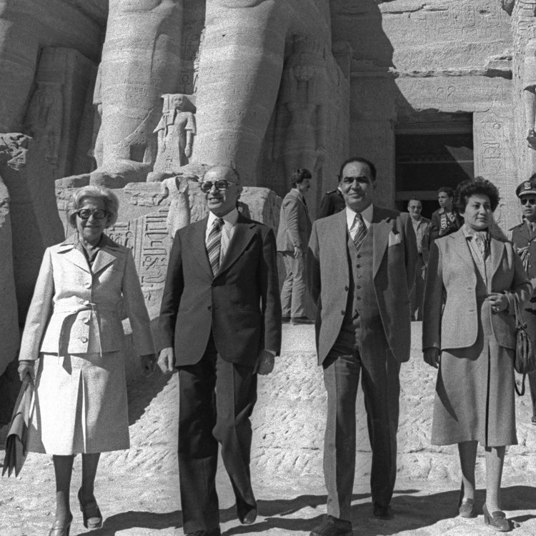 תמונה נדירה של ראש הממשלה מנחם בגין מבקר יחד עם רעייתו עליזה במקדש העתיק אבו-סימבל בעיר לוקסור במצרים בשנת 1980. | צילום: משה מילנר