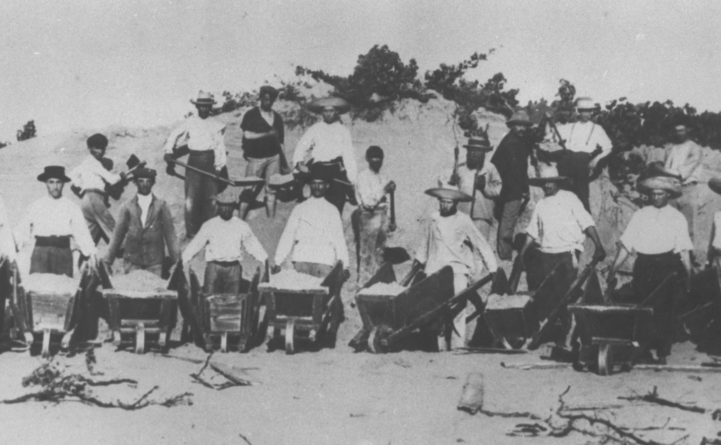 חלוצי ההתיישבות בתל אביב, העיר העברית הראשונה, בתמונה יוצאת דופן על דיונות החול של העיר ב-1910