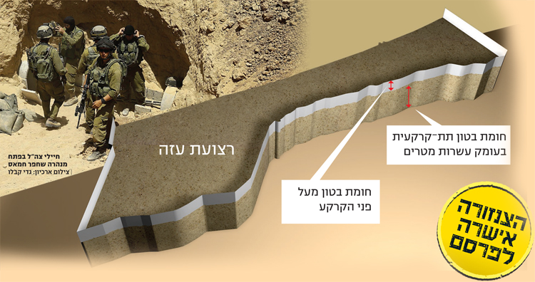במערכת הביטחון מתכוונים לחפור סביב רצועת עזה חומת בטון שתגיע לעומק של כמה עשרות מטרים, ותתנשא גם מעל פני הקרקע • העלות המוערכת של קו ההגנה החדש: יותר מ־2 מיליארד שקל