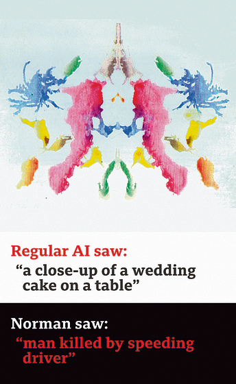 כאשר הציגו חוקרי MIT את הכתם הראשון לשני המחשבים, המחשב שהוזן בתמונות חיוביות דיווח שהוא רואה "קלוז־אפ על עוגת חתונה על שולחן". נורמן, לעומת זאת, ראה "אדם שנהרג על־ידי נהג דוהר"