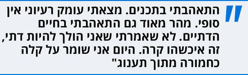 "אז בעיקר הייתי עסוק בעצמי", הוא נזכר בגלגולו הקודם, לפני שחזר בתשובה ועבר שינוי פנימי. "אני זוכר לילות אינסופיים של בילויים בפאבים. תשמע, זה היה חתיכת משעמם. חסר תוכן. ואתה יוצא שוב ושוב, בוהה שם, עם הבירה ביד. זה היה לכאורה שחרור, אבל היה פה כיווץ. בזבזתי כל כך הרבה שנים מהחיים שלי. הייתי בתודעה של לייק, של איך אני נראה, של הכול סביבי. וכשאתה במרכז, וחשוב לך מה חושבים עליך, בפנים אתה מרגיש חסר".