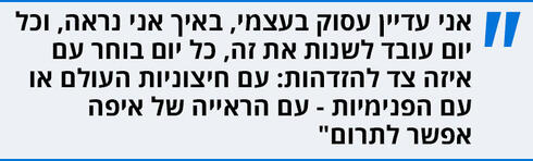 "זה לא השתנה. אני עדיין עסוק בעצמי, באיך אני נראה, וכל יום עובד לשנות את זה, כל יום בוחר עם איזה צד להזדהות: עם חיצוניות העולם או עם הפנימיות - עם הראייה של איפה אפשר לתרום למישהו, לעולם. בשפת הקבלה, איזה כתר אני שם על הראש. כשיש לך תודעת שליחות, כשאתה מרגיש שהעולם קורא לך, אתה לא טרוד בעצמך, ואז אתה לא יכול להיפגע מדבר. זה מאבק פנימי. עבודה תודעתית שכולם צריכים לעשות. מי שלא עושה את זה, נופל לאגוצנטריות. גם דיכאון יכול להיות אגוצנטריות, גם עצבות, כי אני עסוק בעצמי, רק בעצמי, ולא רואה מה התפקיד שלי בעולם.