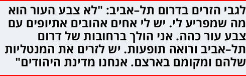 “אנחנו לא יכולים להרשות לעצמנו את מה שראיתי בדרום תל־אביב. עם כל הצער והכאב צריכים לדאוג בנחישות וברגישות שהם לא יהיו פה”.